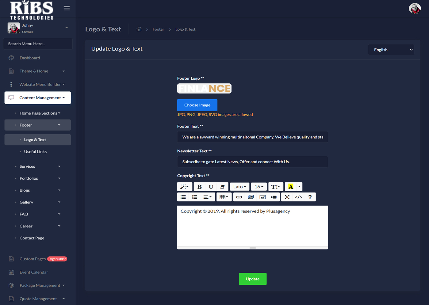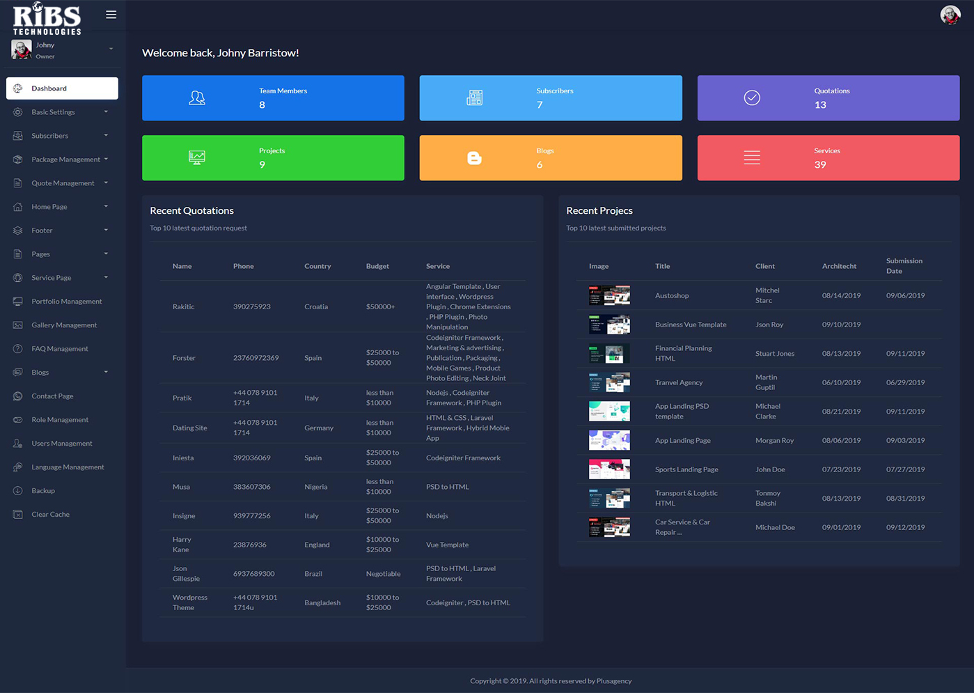 RIBS – Multipurpose Website CMS & Business Agency Management System is a business website CMS (Content Management System). This CMS can be used for multipurpose business such as gym / fitness, restaurant, cleaning service, construction, industry / factory, chemical, company / personal / agency / freelancer portfolio , software / IT company / lawyer, logistic, online course, charity, ecommerce, event ticket management, internet hosting provide / ISP and many more. There are lots of themes & home page designs available here to suit any business