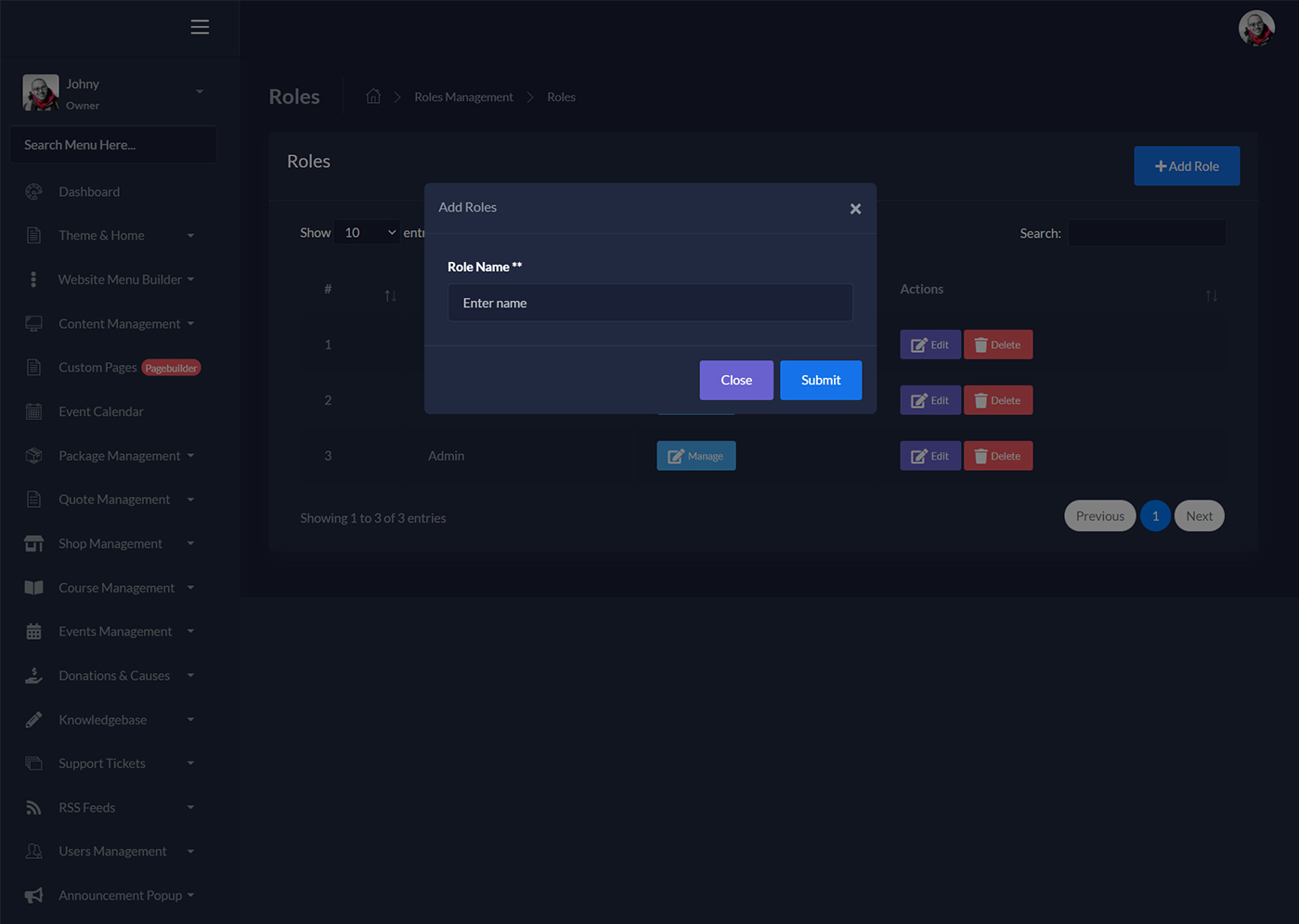 Admin can create megamenus for services, portfolios, products, courses, causes, events, blogs & then can add them in menu using Drag & Drop Menu Builder.