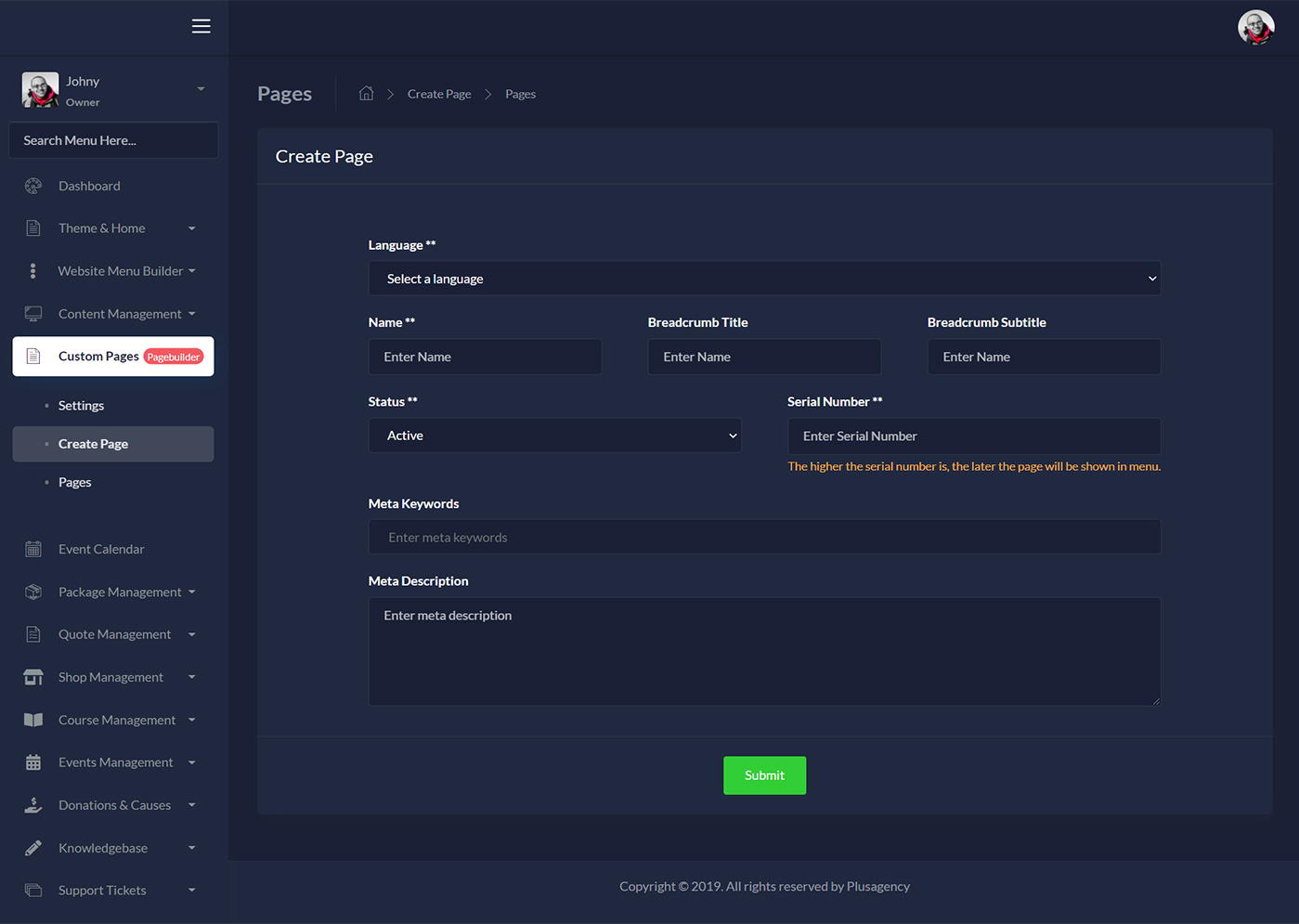 Multipurpose Website CMS has superpowerful Drag & Drop Page builder / Site builder which has lots of pre-designed sections, plugins, blocks, Advanced image editor etc… . Using the Page builder / site builder , you can create any home page / custom pages in few minutes. No coding required.