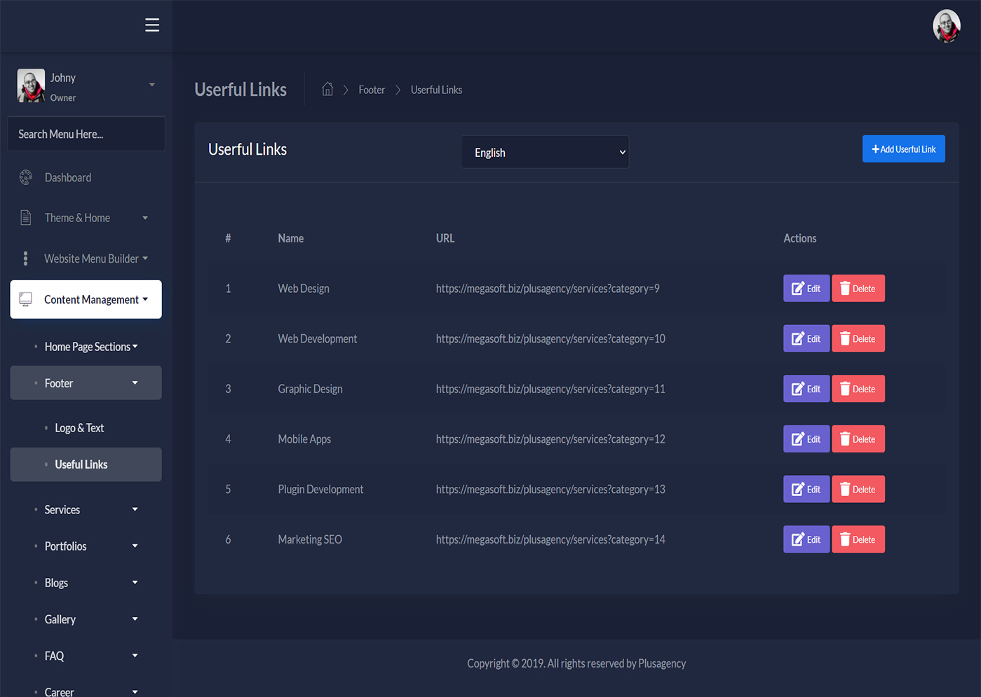 You can create, sort, edit your website menus using this menu builder very easily.
